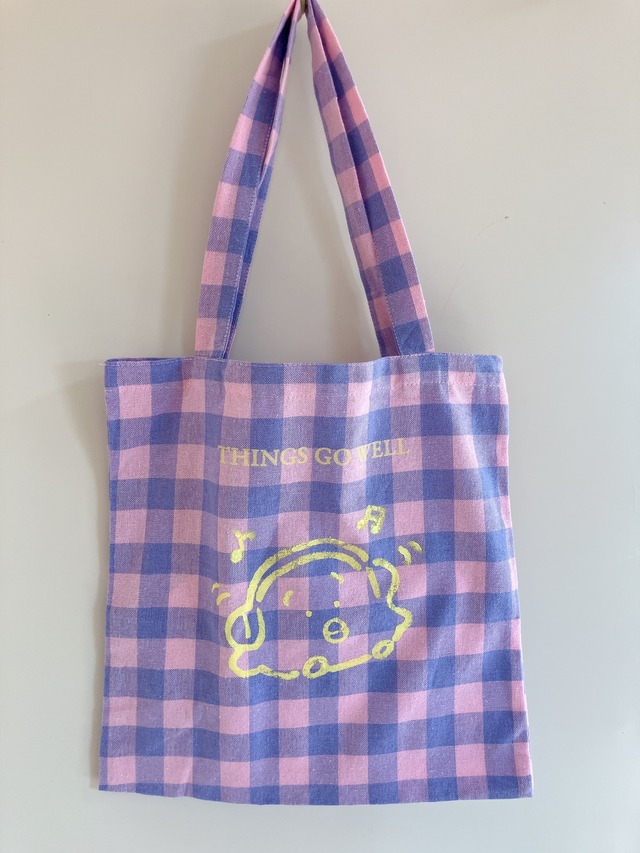 サイズ:約35cm ×35cm 持ち手:約25cm(本体から最長距離) トートバッグは既製品になります。 音楽好きなペンギンのイラストを刷りました。一点ものです。 ※ブルーより若干インクのノリが悪くかすれ気味ですが手描きのような質感になってます。