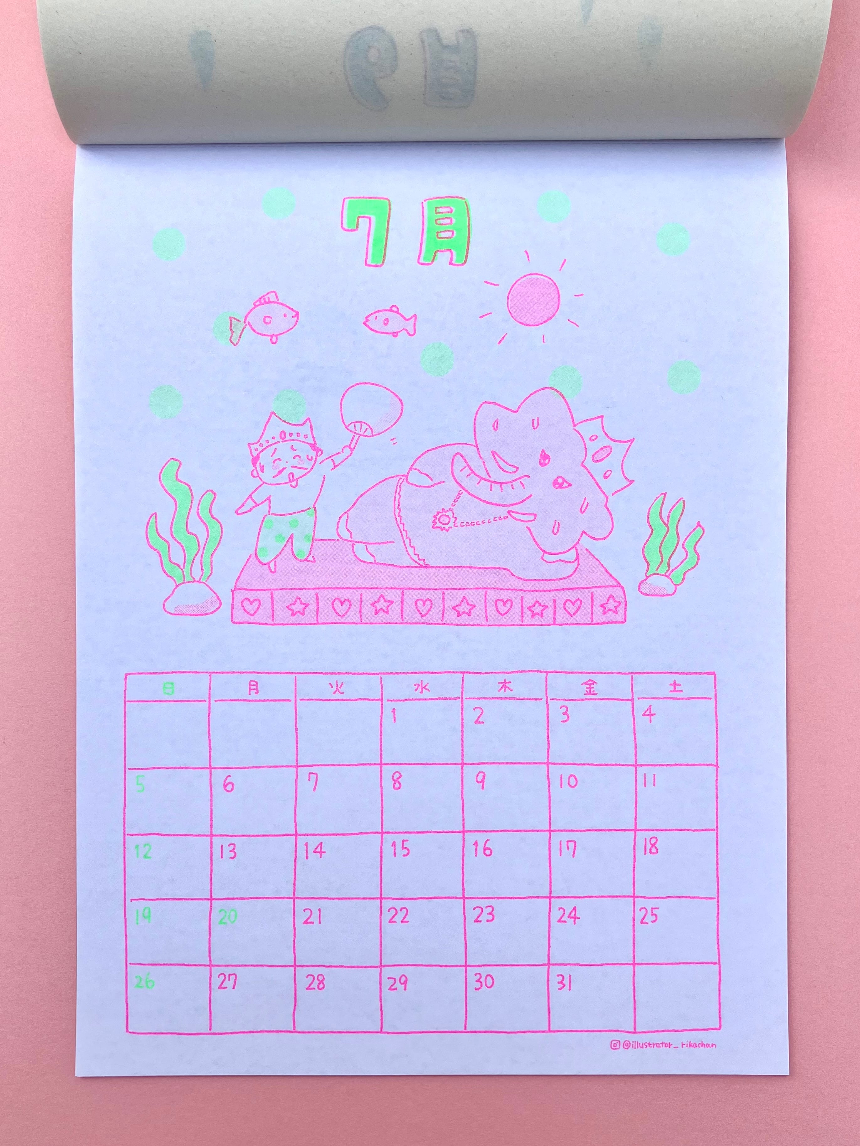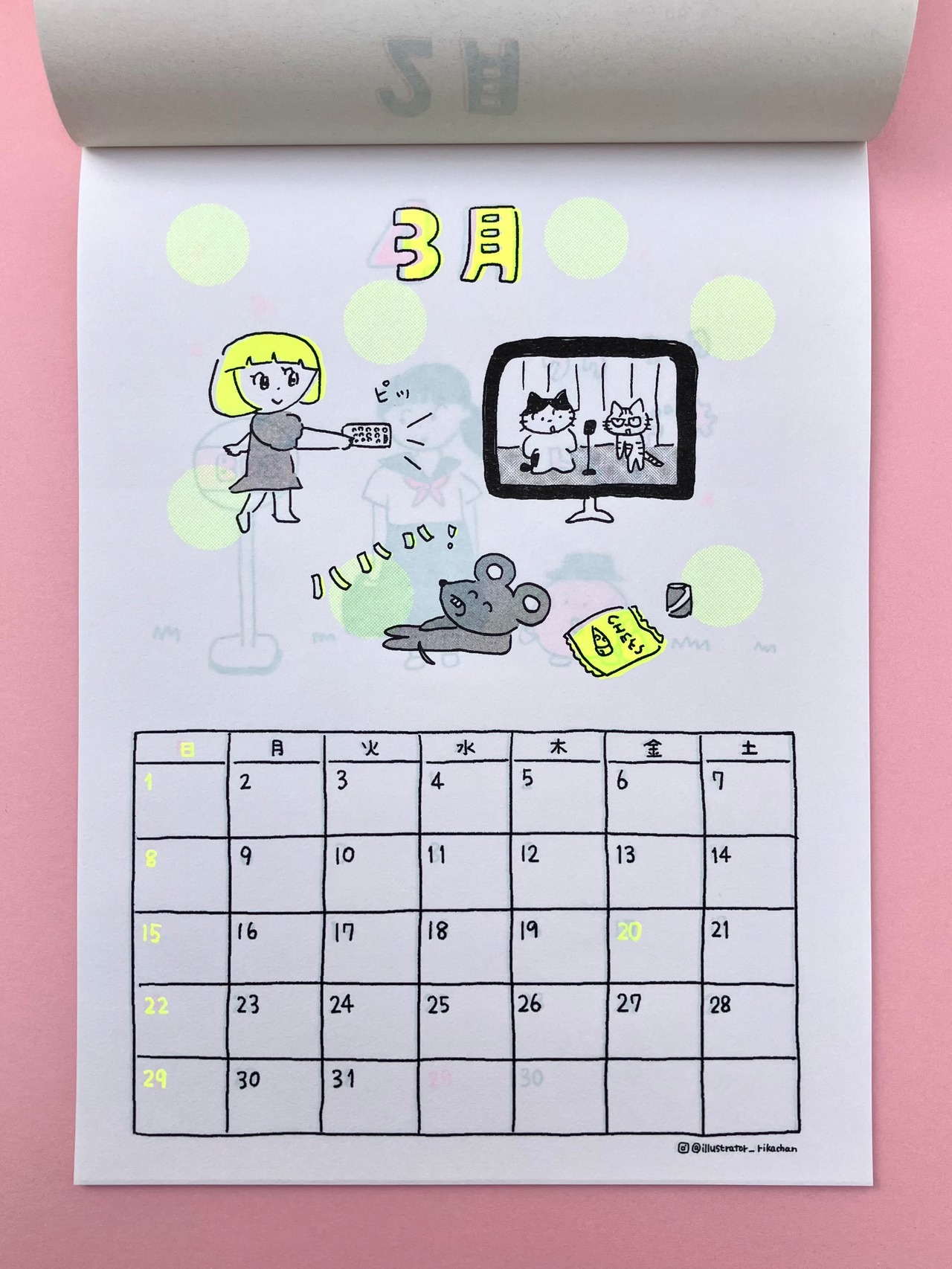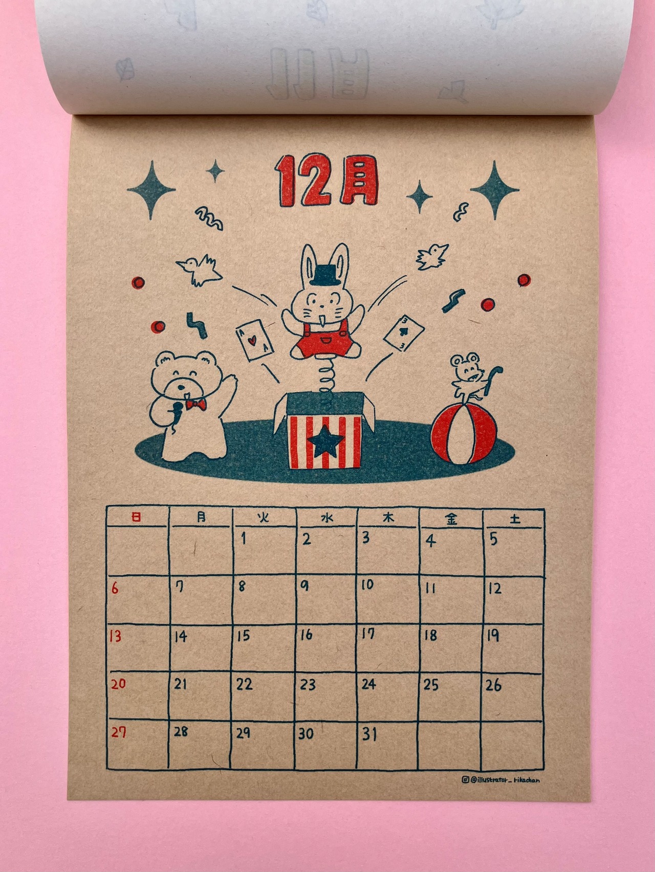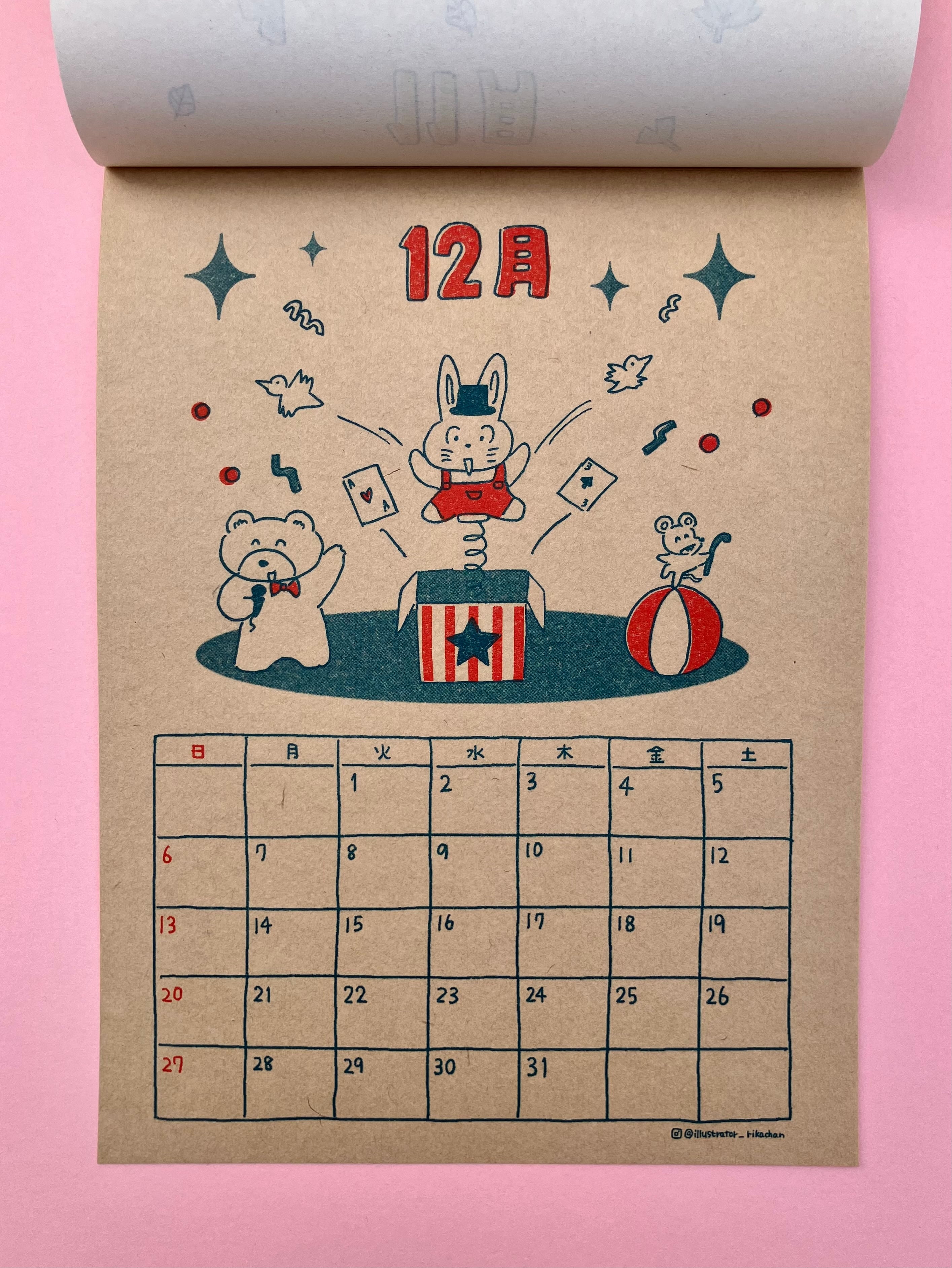 レトロ印刷のリソグラフという印刷方法で、1枚1枚インクと紙を変えてこだわりました。イラストもすべて新作ですので、ぜひぜひ来年を楽しみに買っていただけたらうれしいです!