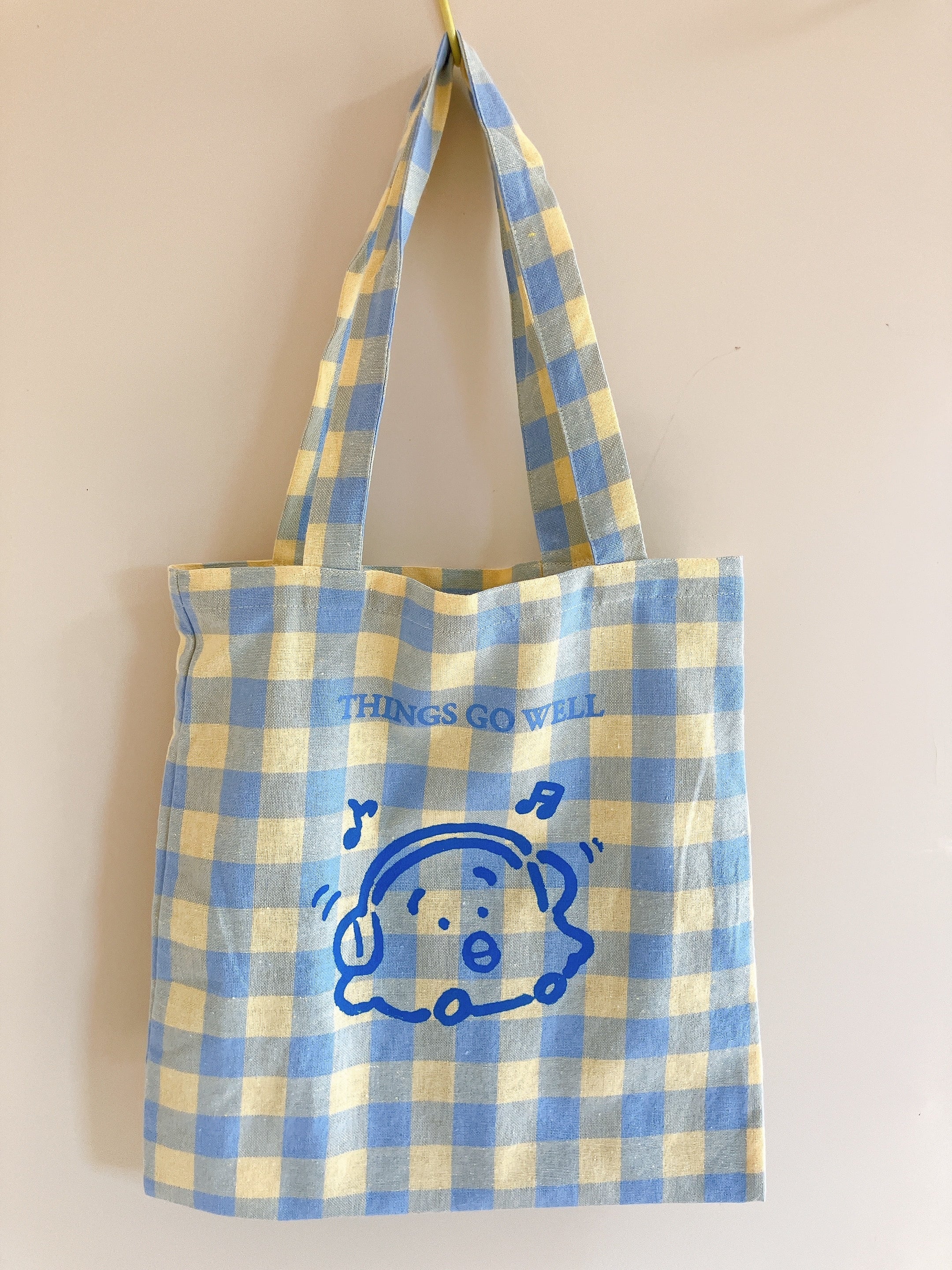 サイズ:約35cm ×35cm 持ち手:約25cm(本体から最長距離) トートバッグは既製品になります。 音楽好きなペンギンのイラストを刷りました。一点ものです。